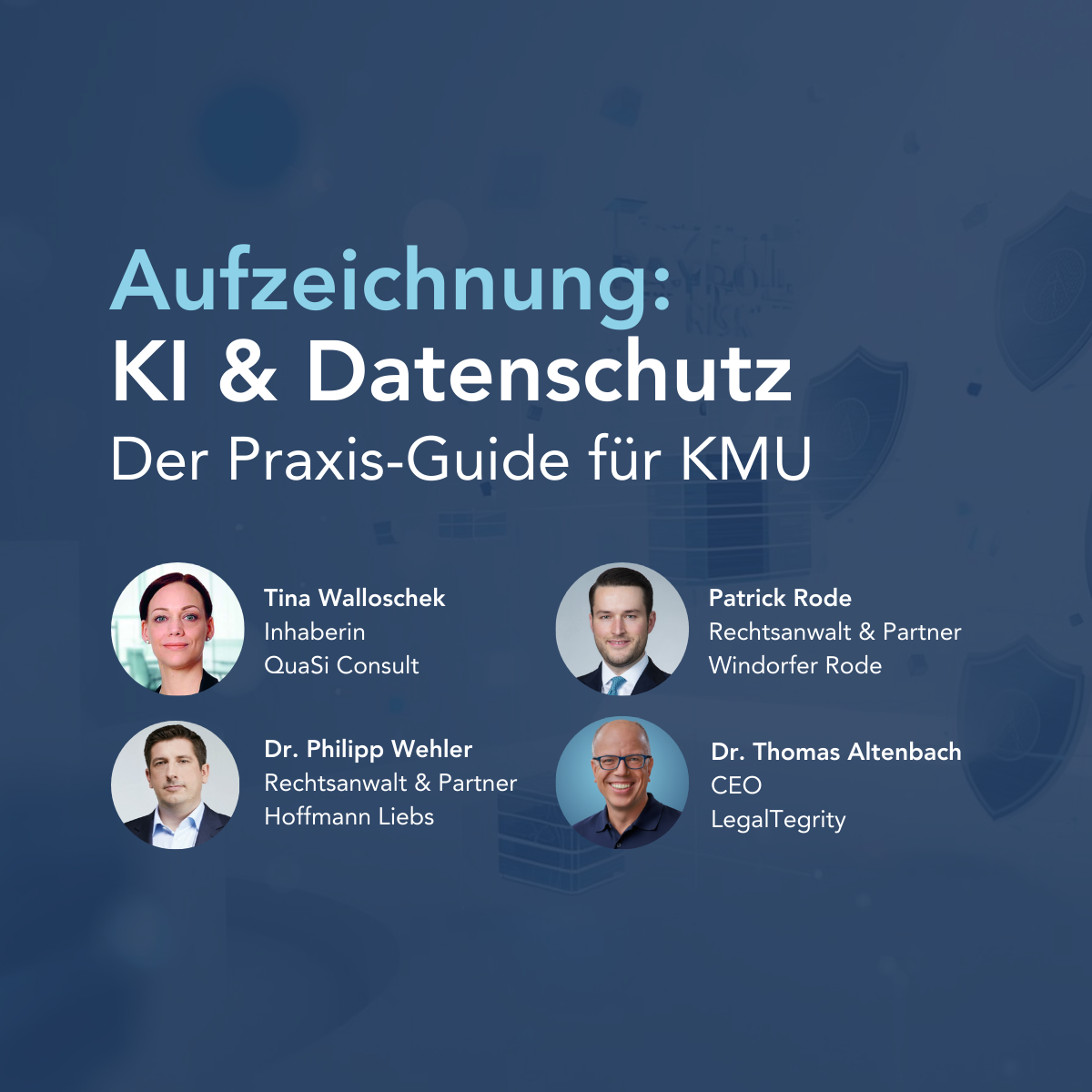 Zum Veranstalter: LegalTegrity ist Lösungspartner namhafter mittelständischer Unternehmen, die den steigenden Anforderungen im Bereich Compliance gerecht werden müssen – vom Hinweisgeberschutzgesetz über ISMS (Informationssicherheits-Managementsystem) bis zu Compliance-Schulungen. Als erfahrene Compliance-Experten mit langjähriger Inhouse-Erfahrung wissen wir, worauf es bei der praxisnahen Umsetzung ankommt.